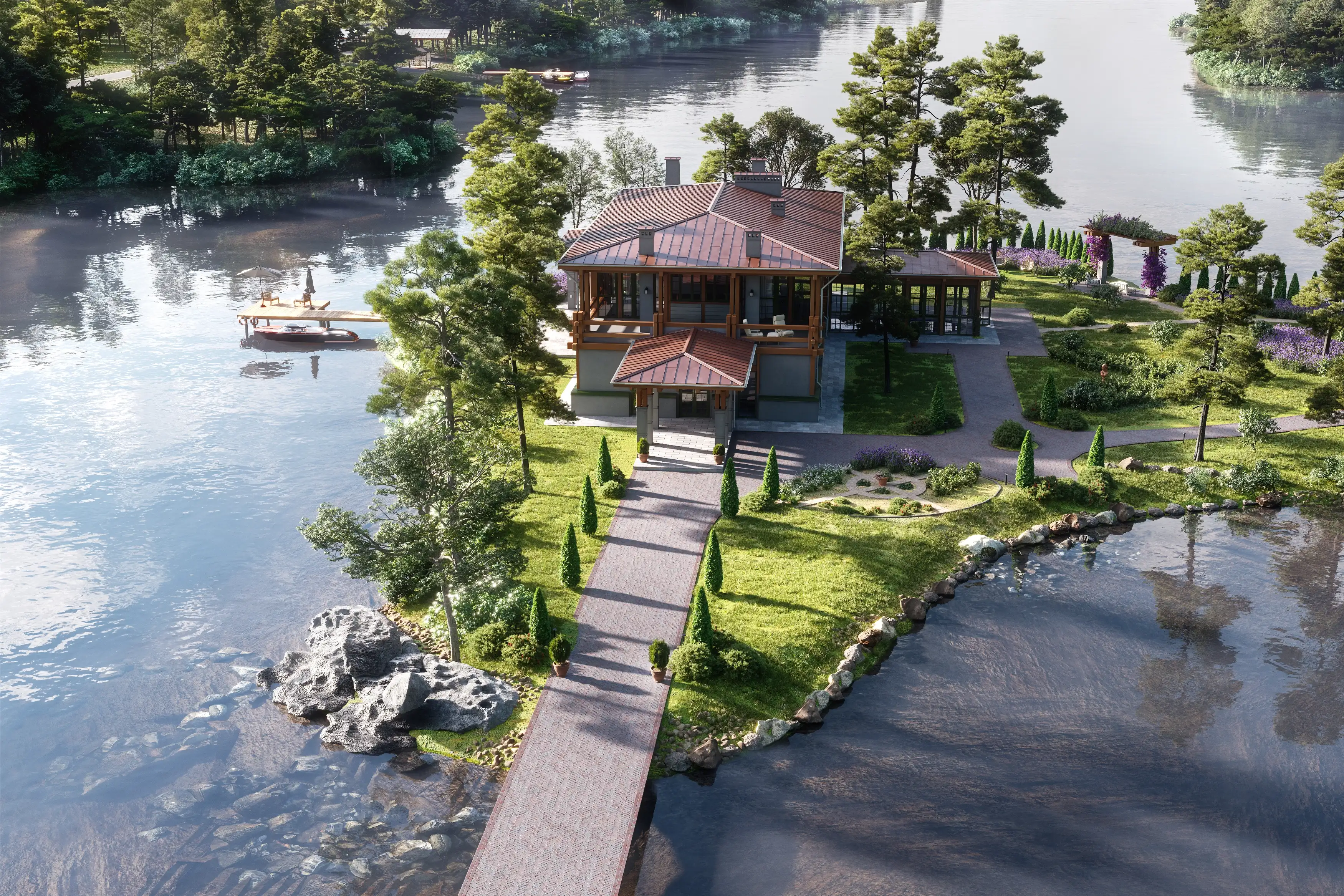 Здание общественного банного комплекса двухэтажное с двумя отдельными объёмами кедровой и керамичнской парной.